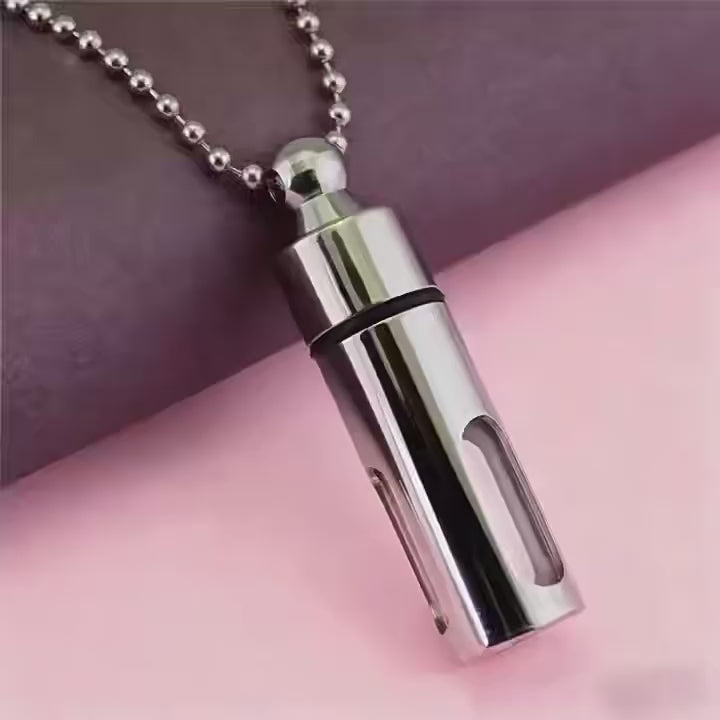 Our cremation necklace is made from 316L Titanium Steel - Lighter than normal stainless steel, more comfortable, never rust or tarnish. Smooth hand polished surface offering comfortable wearing experience. The interior of the pendant is empty and can hold a small amount of ash, a strand of hair, soil or sand.